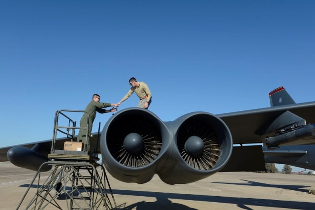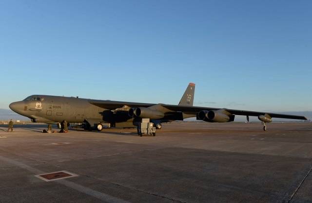 El B-52 es un veterano bombardero estratégico de largo alcance, de velocidad subsónica, diseñado y construido por Boeing que ha sido continuamente puesto al día desde que entró en servicio en los años cincuenta. Uno de estos aviones puede transportar más de 32 toneladas de bombas y su radio de acción sin repostar es de 14.000 km., distancia que puede aumentarse recurriendo al reabastecimiento en vuelo. Además puede despegar corto de combustible para poder hacerlo con más armamento para posteriormente ser reabastecido en vuelo.