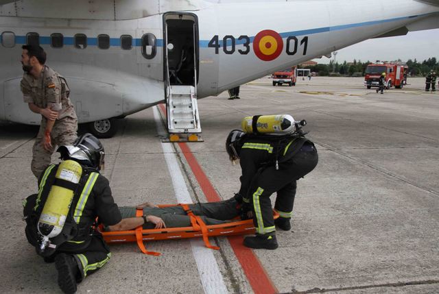 En una de las últimas ocasiones se simuló el accidente de noche de un C295 perteneciente al Ala 35, que junto al citado 403 Escuadrón y los aviones CN235 VIGMA del 803 Escuadrón son las unidades de vuelo con sede en la Base. Un supuesto que dada la oscuridad conlleva más dificultad, así como por el menor número de efectivos militares presentes en la base en horario nocturno, dado que en los supuestos de emergencias se intenta testar la reacción con el personal que normalmente está presente en la instalación a la hora de producirse el siniestro. (Texto y fotografía. Julio Maíz Sanz)