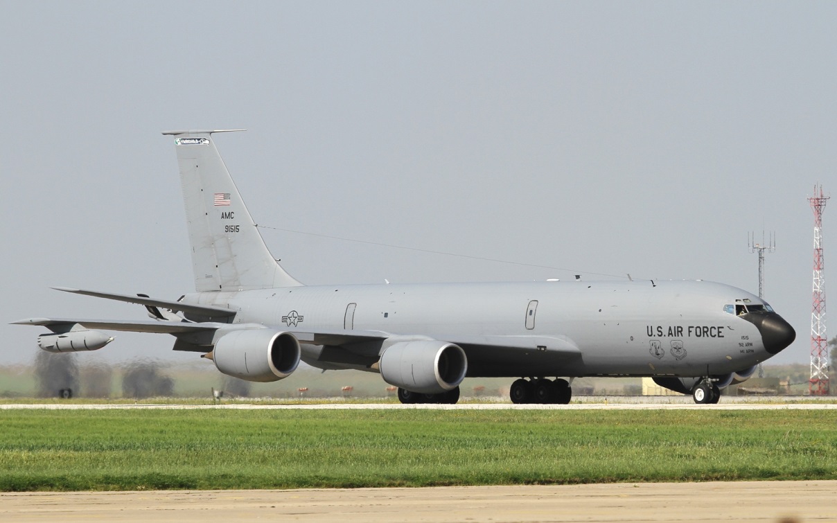 Los veteranos KC-135 siguen siendo un elemento esencial para los Estados Unidos, aquí vemos uno rodando en la Base de Moron. (foto Julio Maiz)