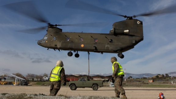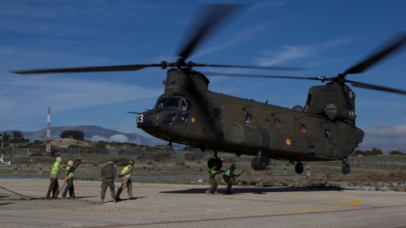 Se han realizado entrenamientos conjuntos de transporte de vehículos mediante eslinga usando los helicópteros CH-47 Chinook del BHELTRA V, ejercicios que han tenido lugar en la base de las FAMET en Colmenar Viejo, Madrid. Los soldados han formado unidades de apoyo de helicópteros, realizando maniobras diurnas y nocturnas en las que se han transportado vehículos y depósitos de agua mediante diferentes combinaciones de eslingas y cables. El transporte de vehículos a largas distancias mediante helicópteros es necesario cuando las infraestructuras terrestres están destruidas o no son seguras o en casos de desastres naturales. (J.N.G.)
