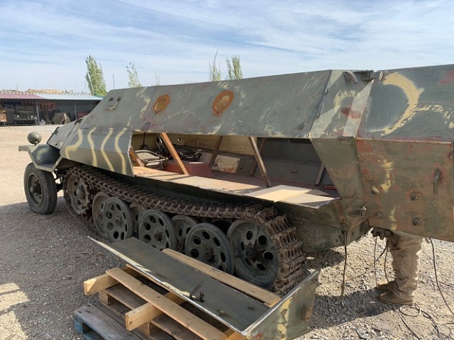 El blindado fue adquirido por la fundación Don Rodrigo, que lo sometió a un largo proceso de restauración y transformación parcial a lo largo de 300 horas de trabajo para que se pareciese lo más posible al modelo alemán original. Esta fundación se ha especializado en proporcionar armamento, vehículos, y otros equipos a productoras de televisión y cine, que ruedan películas históricas que necesitan de atrezo bélico.