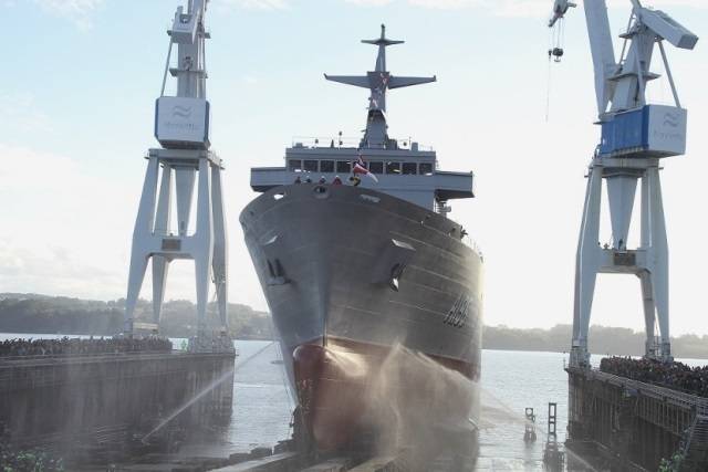La tarde del pasado día 23 en los astilleros de Navantia de Ferrol se lanzaba a la Ría el navío que servirá a la Commonwealth de Australia como HMAS "Nuship Supply". Este buque auxiliar, que cubrirá junto a su gemelo la carencia de la RAN (Royal Australian Navy) en el campo de los medios navales de aprovisionamiento de combustible y otros elementos en la mar o AOR (Auxiliary Oiler Replenishment), encara una vez a flote su fase final de construcción en los muelles de la naval española.