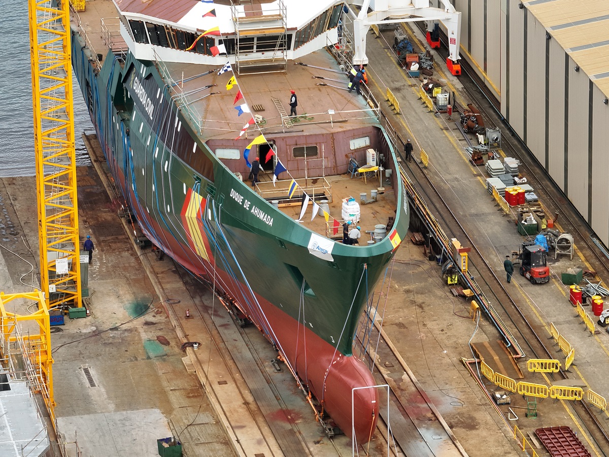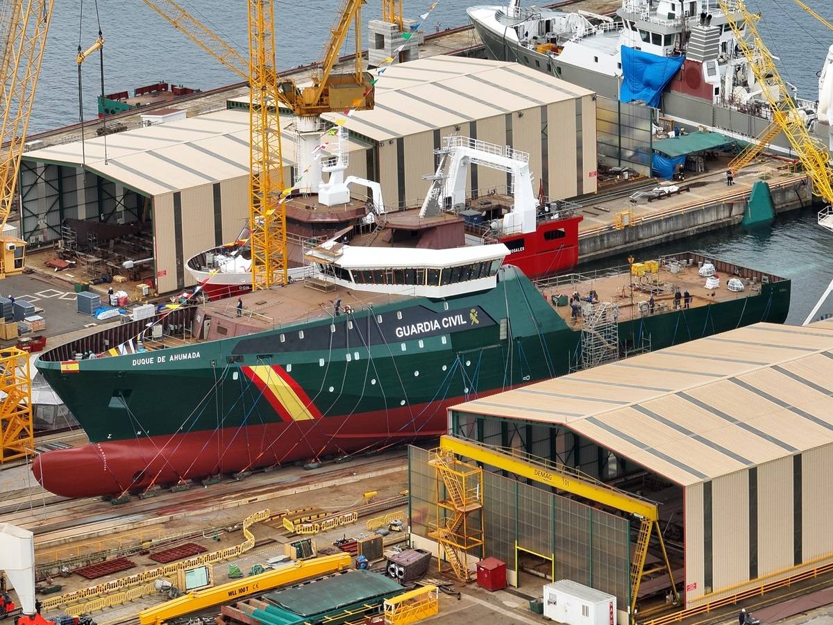 En las instalaciones del astillero gallego Armon en el puerto de Vigo se ha botado el 14 de noviembre la que será la mayor unidad del Servicio Marítimo (SEMAR) de la Guardia Civil, el buque oceánico “Duque de Ahumada”.