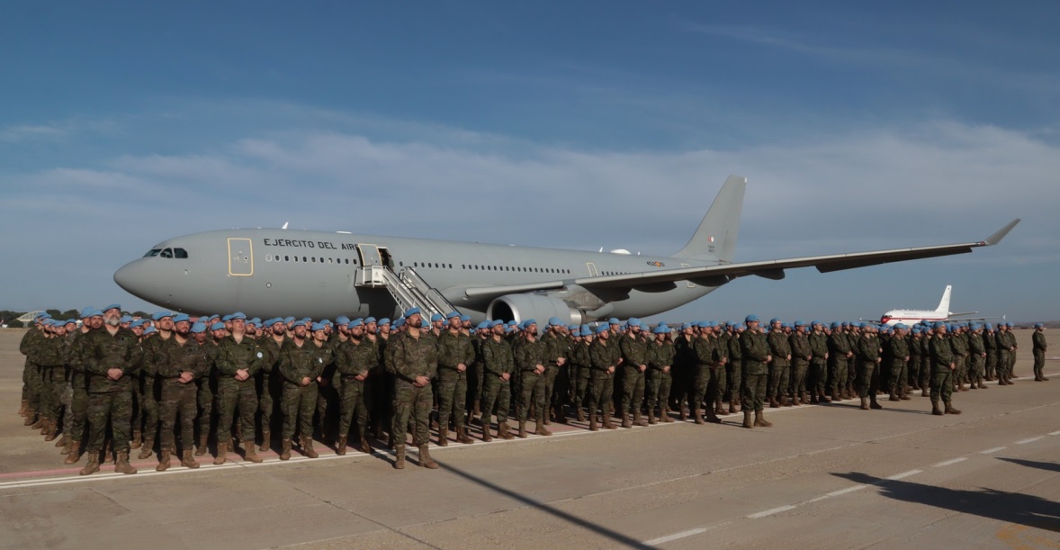 La rotación, que ha viajado este domingo a bordo del avión de transporte Airbus A330 del 45 Grupo del Ejército del Aire y del Espacio, es la segunda de las tres que integrarán el despliegue español, formado por unos 600 militares comandados por el general de brigada Fernando Ruiz Gómez, actualmente al frente de la BRI X. Estos efectivos darán relevo a sus compañeros de la Brigada “Aragón” I, que aprovechan estos vuelos entre Torrejón y Beirut para volver a Zaragoza, sede de la Unidad, después de pasar algo más de seis meses en el país.