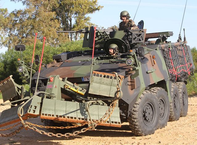 .-Los blindados Piranha III son unos potentes medios 8x8 que estos días van a ejercitarse en el CENAD San Gregorio. (Octavio Díez Cámara)