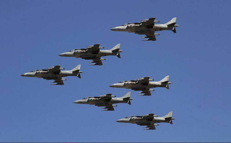 El AJEMA se dirigió a SM y a los centenares de invitados realizando un repaso de la historia de la Aviación Naval, recordando las figuras de precursores de las diferentes épocas, como fue el capitán de navío Pedro Cardona, o el almirante Saturnino Suanzes de la Hidalga. Tras el siempre emotivo acto a los caídos, y entonar la mayoría de los presentes el himno de la Armada, empezaba el magnífico desfile aéreo encabezado por los seis citados Boeing AV-8B+ Harrier II. Tras ellos han pasado, tres aviones Cessna Citation II y VII, tres helicópteros AB-212+, dos SH-60B Seahawk, cuatro veteranos Sikorsky SH-3D Sea King y otros tantos Hughes-500 de la 6ª Escuadrilla. A reglón seguido comenzaba el desfile terrestre de la Fuerza presente durante los actos, en el que han participado una Escuadra de Gastadores, la Unidad de Música del Tercio del Sur (TERSUR), una compañía del Ejército de Tierra (ET) en concreto del Regimiento de Artillería de Costa nº 4 (RACTA 4), otra de la Armada formada principalmente por personal de la FLOAN, y una tercera formada por personal del Primer Batallón de Desembarco del TEAR.