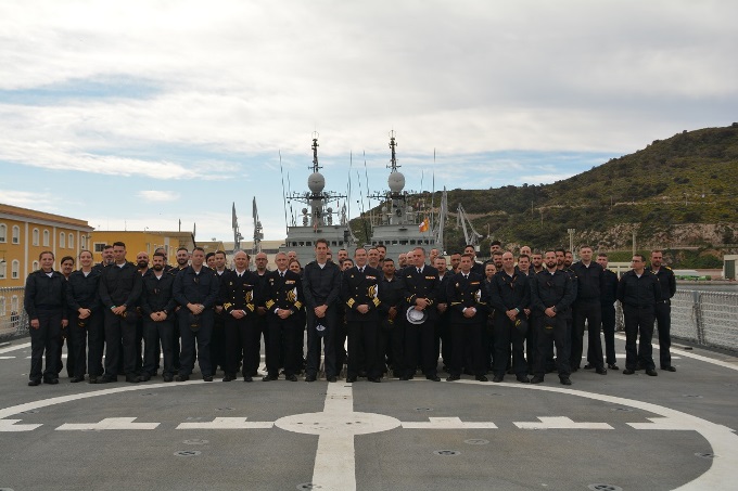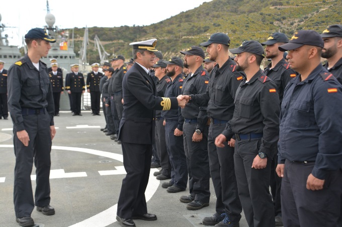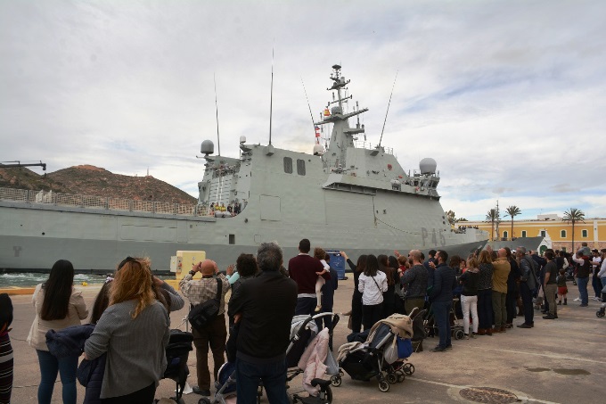 Familiares y amigos acudieron a las instalaciones militares del Arsenal de Cartagena para despedir a la dotación del barco, que está compuesta por 74 hombres y mujeres, ya que para esta misión el buque cuenta con un Equipo Operativo de Seguridad de Infantería de Marina, un médico y un capellán castrense.