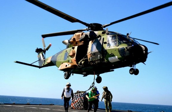 ·Durante las maniobras se realizó un aprovisionamiento vertical con un helicóptero de la Royal Australian Navy