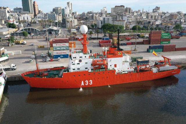 El buque de investigación oceanográfica (BIO) “Hespérides” recala en el puerto de Montevideo en su primera escala de su XXIV Campaña Antártica, entre los días 8 y 10 de enero de 2019. Durante su estancia realizará carga logística de víveres, combustible y material científico uruguayo con destino a las bases científicas antárticas uruguayas. Además, está prevista la realización de diversas actividades protocolarias, entre las que destacan una visita profesional de miembros de la Marina Uruguaya; otra del Instituto antártico Uruguayo; la entrega protocolaria de la última carta de navegación antártica elaborada por el Instituto Hidrográfico de la Marina española al Servicio de Oceanografía, Hidrografía y Meteorología de la Armada Nacional del Uruguay; y un almuerzo en la Residencia del Embajador de España en Montevideo.