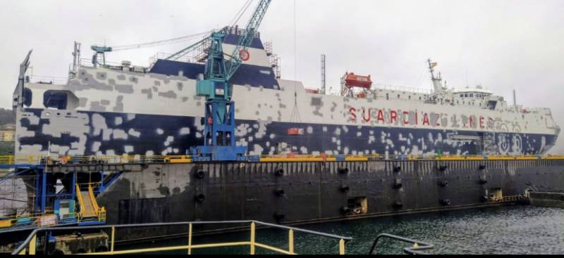 Así desde el pasado 4 de mayo se encuentra varado en el dique flotante de Metalships & Docks, en Vigo (Pontevedra), desde el que saldrá ya con su nuevo librea gris naval camino de Cartagena, con mando y tripulación de Suardíaz. Flota Suardiaz, como adjudicataria del contrato nos confirma que el buque entró en las citadas instalaciones viguesas el pasado 4 de mayo, estando previsto que los trabajos concluyan el 24 de ese mes, fecha en la que está previsto que el buque se pertreche y pueda salir de Vigo hacia Cartagena.