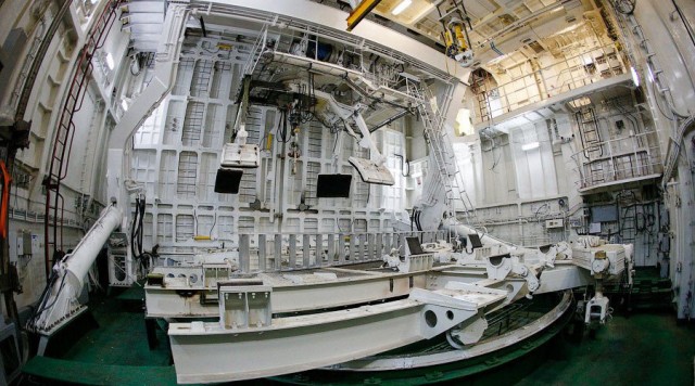 Interior del buque Yantar. Se aprecia el sistema de posicionamiento de los sumergibles.
