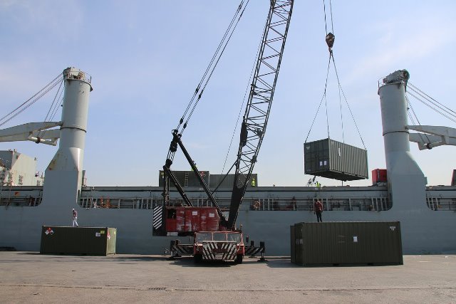 - “El Camino Español” descargando contenedores en Beirut. Foto: EMAD.