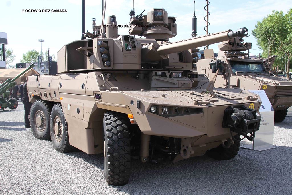 La solución francesa, el Jaguar que es un 6x6 con un cañón de 40mm, podría ser especialmente válida para reemplazar los actuales 6x6 y 8x8 españoles. (Octavio Díez Cámara)
