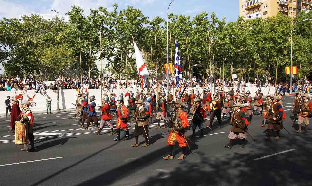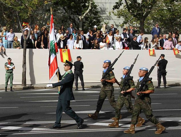Otro de los apartados más vistosos fue el desfile de 59 militares del Ejército de Tierra (ET) vestidos con los uniformes que llevaban las tropas de los Tercios de Flandes, que discurrían por el denominado “Camino Español”, que unió en el Siglo XVI y XVII los territorios bajo control de España, de Milán con Bruselas. El camino se instauró en 1567, por lo que este año se celebra el 450 Aniversario. Novedoso fue también ver al militar libanes que portaba la Bandera de Líbano como agradecimiento al homenaje que las Fuerzas Armadas Libanesas hicieron a España y las víctimas de los atentados de Barcelona ondeando en la montaña de Ras Baalbek su enseña y la de España, tras recuperar el territorio que llevaba años en manos de los terroristas islámicos del Daesh.(Julio Maíz Sanz)