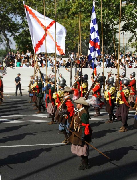 ·Los Tercios españoles, portando la tradicional bandera de la Cruz de Borgoña de San Andrés, “revivieron”, gracias al ET, 450 años después. Foto: Julio Maíz/defensa.com