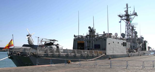 ·La fragata Canarias atracada en el puerto de Catania (Sicilia), en su popa se puede ver el helicóptero SH-60B, que acaba de ser relevado en Mahón.