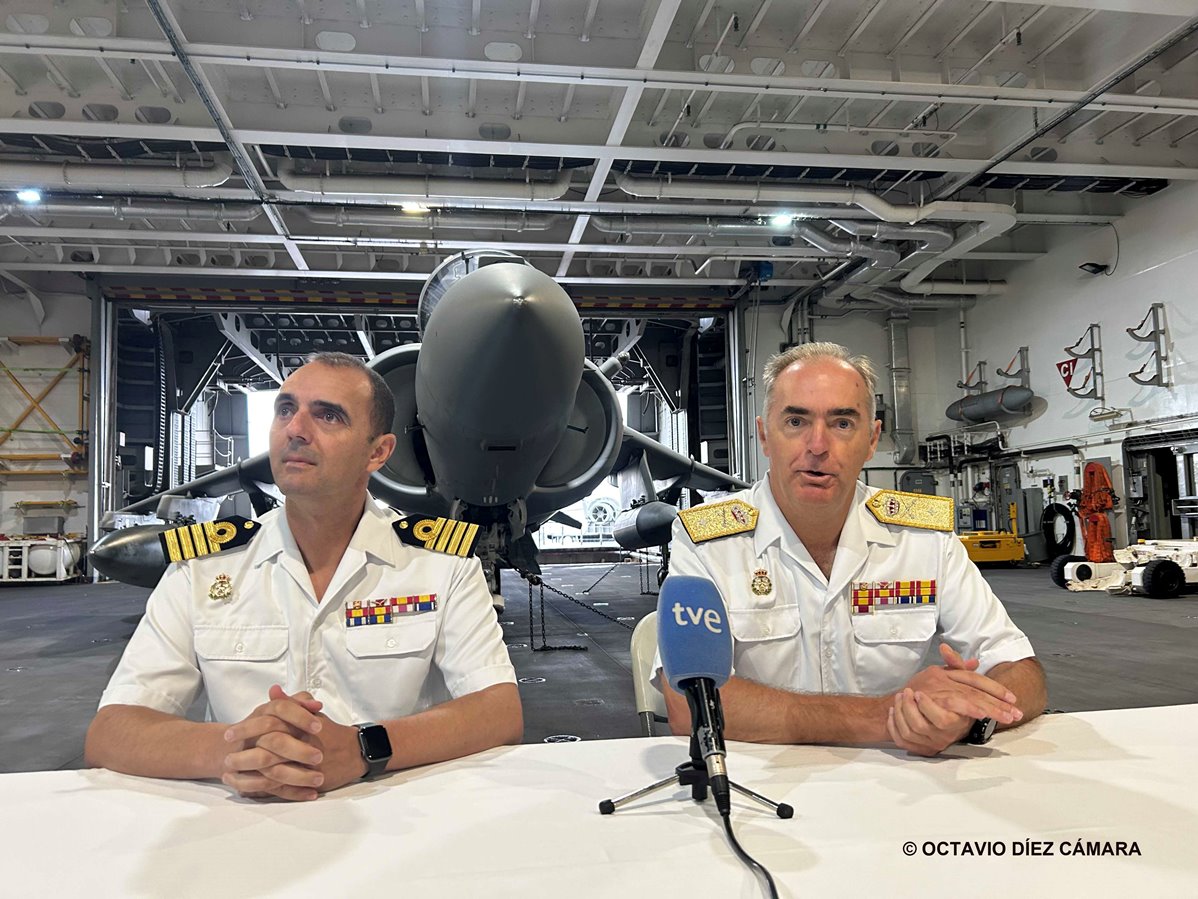 “Como Comandante del buque, mi responsabilidad es alistar el barco siguiendo las instrucciones del almirante, el Comandante del Grupo Anfibio y de Proyección como, llegado el caso, responsable de su empleo. A bordo se integra, bajo mi Mando, la dotación de unos 300 efectivos, pero también la Unidad Aérea Embarcada, pilotos y personal de mantenimiento de aeronaves y helicópteros, y también la Unidad de las lanchas de desembarco”, explicó el capitán de navío Martínez Mata.