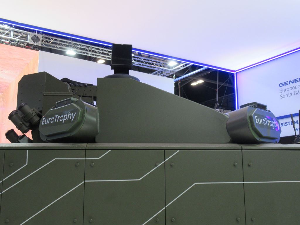 FEINDEF era el escenario elegido por General Dynamics European Land Systems – Santa Bárbara Sistemas (GDELS-SBS) para exponer la última versión del Trophy, en este caso montado en un vehículo blindado de cadenas de la familia ASCOD. Recordemos que hace años el vehículo de zapadores Castor, basado en el ASCOD, ya mostró una maqueta de este mismo sistema (sin los efectores) en la primera edición de FEINDEF en 2019.