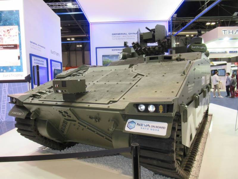 El ASCOD empleado como demostrador de conceptos tecnológicos de GDELS-SBS incluía una maqueta a escala real del Trophy en el que se podían reconocer los principales elementos de este sistema, como los cuatro paneles planos del radar que cubren los 360 grados del vehículo y los dos lanzadores de efectos, cubriendo entre ambos toda la envolvente del vehículo (incluso con zonas de superposición y redundancia), cada uno cubriendo un sector lateral de 180 grados, con su sistema de recarga bajo él.