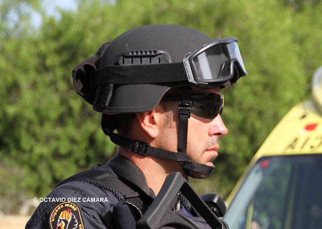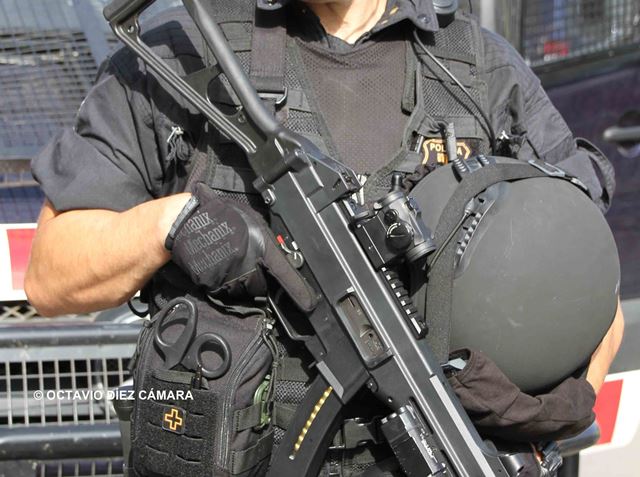 Fotografía: Desde hace un par de años determinadas unidades del Cuerpo de los Mossos d’Esquadra realizan algunos de sus despliegues portando modernos cascos de MSA. (Octavio Díez Cámara)