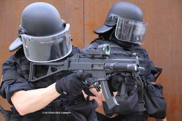 En la BRIMO llevan muchos años trabajando con cascos antibala y pantalla frontal, y lo harán con el nuevo modelo que se adquiera. (Octavio Díez Cámara)