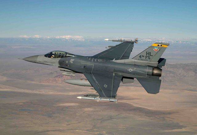 Fotografía: Un F-16C de la USAF, debajo de su ala izquierda se ve un drop tank, similar a los lanzados por el aparato del incidente de Morón. (foto USAF).