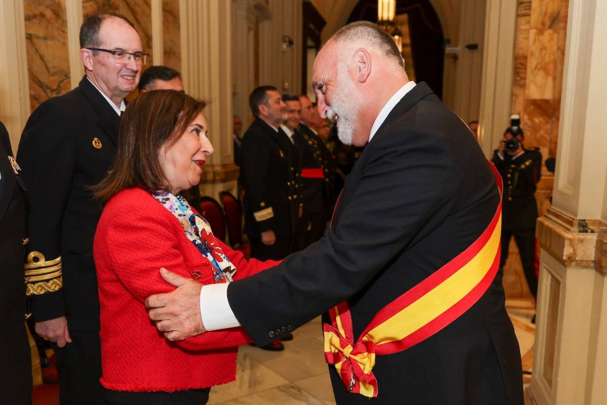 El chef internacional José Andrés ha recibido de manos de la ministra de Defensa, Margarita Robles, la Gran Cruz al Mérito Naval con distintivo blanco junto a otros cinco altos oficiales de la Armada, en un acto celebrado en su Cuartel General, en Madrid, en el que se han entregado también 31 Cruces a personal civil y militar.