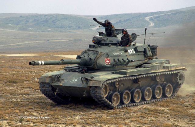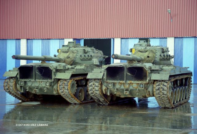 Curiosa imagen que conjuga la tecnología del carro estadounidense M47 evolucionado en España con un cañón de 105mm de origen israelí. (Octavio Díez Cámara)