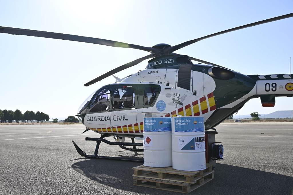 Hemos sabido que se ha realizado el primer vuelo con un helicóptero EC-135 de la Guardia Civil. Se ha empleado combustible renovable de Repsol del tipo SAF (Sustainable Aviation Fuel).