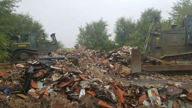 Hemos sabido que la preparación del terreno se iniciaba la semana pasada, abriéndose un gran acceso para el futuro paso de visitantes desde esta nueva zona, donde se instalaría el nuevo parking, a las actuales instalaciones del Museo y para la entrada de maquinaria pesada para la preparación del terreno. La ejecución de este trabajo inicial ha sido encargada a la UME (Unidad Militar de Emergencias), que ha desplazado personal de su Compañía de Ingenieros del BIEM (Batallón de Intervención de Emergencias) I, que tiene sede en la base aérea de Torrejón (Madrid). En las imágenes adjuntas se pueden ver los bulldozer Caterpillar D7R de la Unidad retirando escombros y abriendo los citados nuevos viales. (Julio Maíz Sanz)