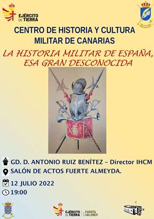 El próximo martes, 12 de julio, a las 19:00 horas, en el salón de actos del Fuerte de Almeyda, en Santa Cruz de Tenerife, se impartirá una conferencia bajo el título “La historia militar, esa gran desconocida”
