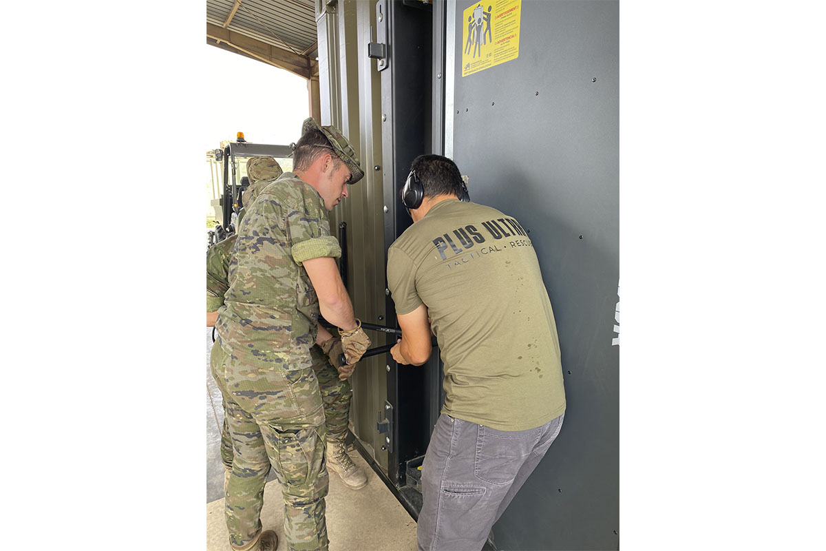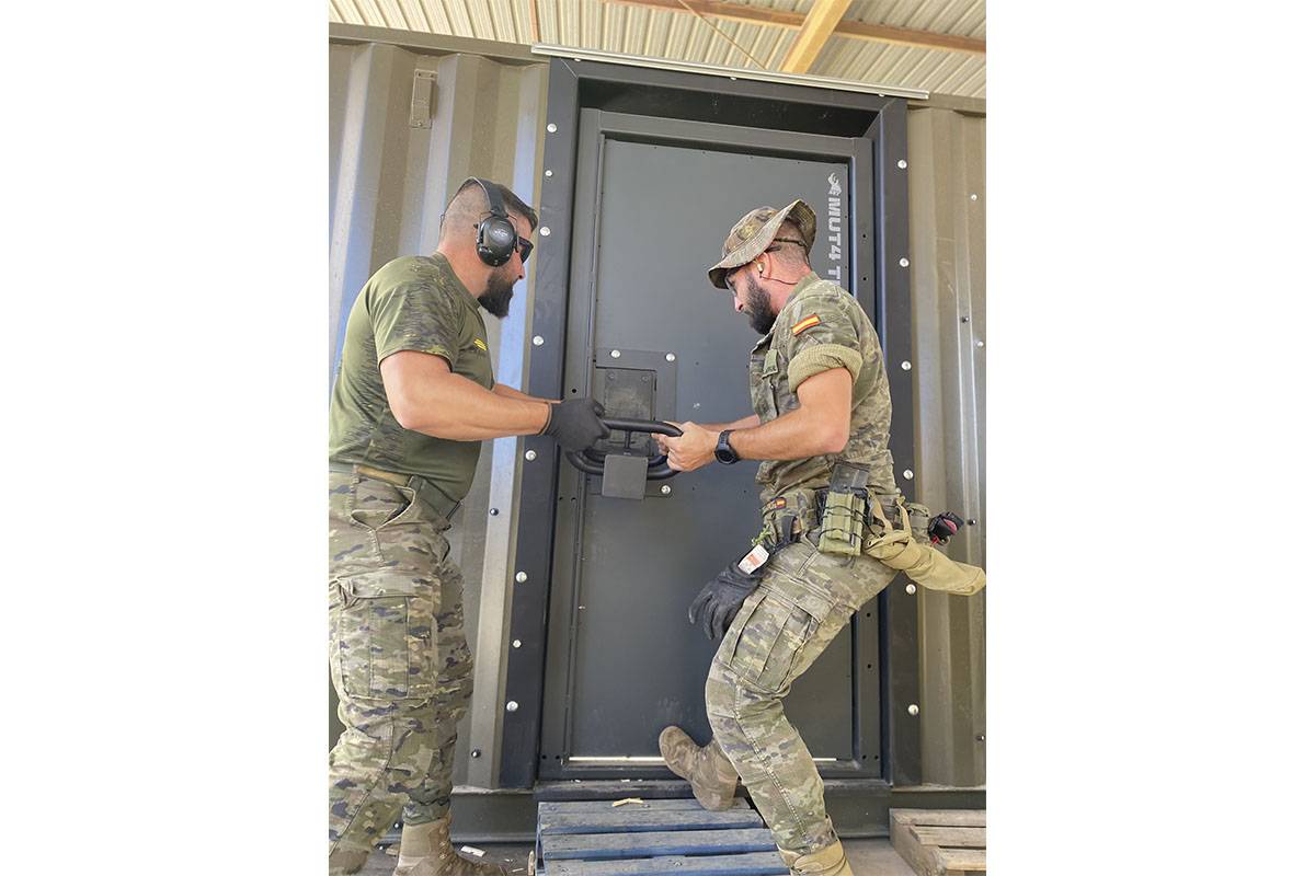 Los contenedores, de uso individual o montados conjuntamente, así como los diferentes modelos de puertas, permiten la instrucción de técnicas de breaching en diferentes escenarios, pudiendo ser portables a zona de operaciones o cualquier campo de maniobras. Las herramientas permiten la apertura de puertas de diferente grado de seguridad, ventanas y cristales, pudiendo ser portadas en mochila o de manera individual gracias al diseño y disminución del peso. (José Mª Navarro García)