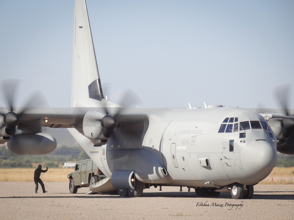 Un C-130J Súper Hércules de la Aeronautica Militare italiana en el aeródromo militar de Ablitas. (Esteban Maiza)