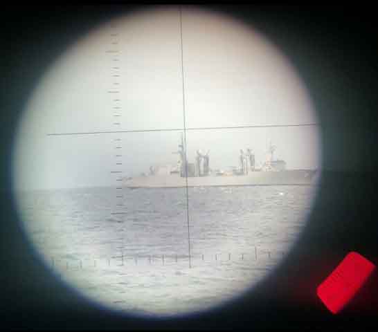 ·Buque de aprovisionamiento de combate 'Patiño' visto desde el periscopio de ataque del 'Mistral'
