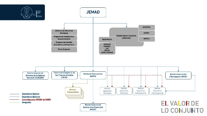 De este modo, se crea el Mando Operativo Ciberespacial (MOC), el Mando Operativo Marítimo (MOM); el Mando Operativo Terrestre (MOT) y el Mando Operativo Aeroespacial (MOA).