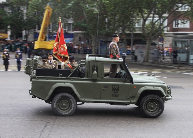 ·El vehículo, que abrió el desfile, transportando al general Rafael Colomer Martínez del Peral, jefe de la BRI XII y principal responsable del desfile. Foto: Julio Maíz/defensa.com
