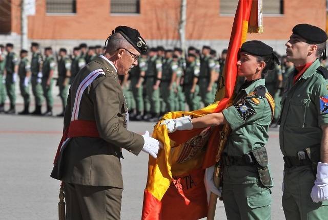 De hecho para esta ceremonia militar, el general se ha puesto la característica “boina negra” que distingue a los miembros de la BRIPAC, que como es preceptivo se ha quitado en el momento de besar la enseña nacional de España, profundamente emocionado.