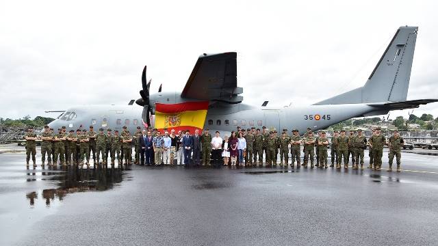 Fotografía: Destacamento Mamba en Gabón durante un acto civil el año pasado (Ejército del Aire)