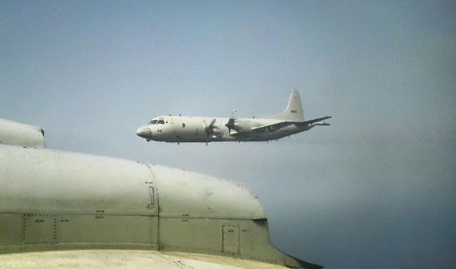 En esta ocasión los objetivos de la misión del P.3 del Destacamento español le llevaron a terminar su trabajo en un punto muy próximo a donde se encontraban patrullando los aviones japoneses. Y no se podía desaprovechar la ocasión. Los tres aparatos se aproximaron en el aire, en una zona segura, y realizaron un vuelo en formación táctica, que supuso un momento muy especial para la tripulación del avión español, después de una misión de más de ocho horas en la que se recorrieron cerca de 2000 millas náuticas.