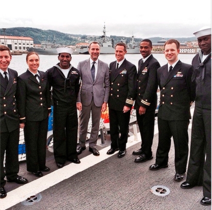 El diplomático, además de mantener una reunión con la dotación del navío, que encabeza el commander (capitán de fragata) Eddie Crossman, ha tenido una serie de entrevistas con miembros de la Armada española, además de realizar una visita a los astilleros de la empresa pública Navantia. En dicha planta ferrolana Costos y los miembros de la US Navy que le acompañaban han visitado diversas instalaciones, incluido el taller de reparaciones.
