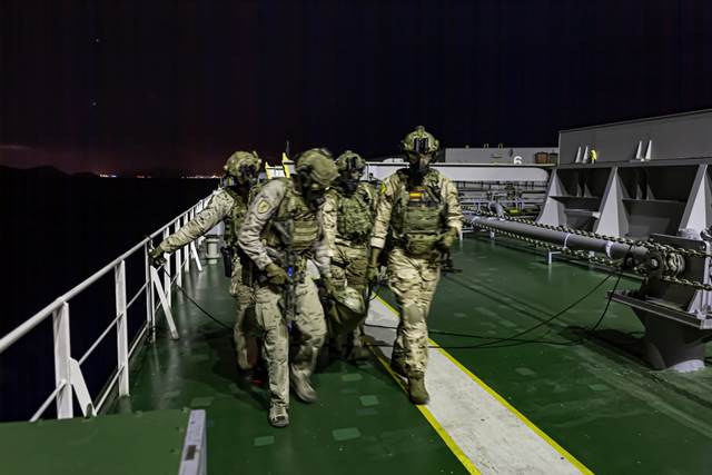Paralelamente, el buque “MG Neptune”, tras la misma labor de coordinación con armadores y fletadores, fue asaltado en la noche del 26 de mayo por una fuerza de asalto de la Fuerza de Guerra Naval Especial (FGNE) compuesta por una Unidad de Operaciones Especiales Marítimas o Special Operations Maritime Task Unit (SOMTU). La FGNE es la Unidad de operaciones especiales de la Armada, y aunque forma parte de la IM también cuenta con personal de la Armada en sus filas. En el abordaje del “MG Neptune”, la FGNE participó con varios de sus estoles (designación que dan a sus unidades básicas operativas); y una Unidad Especial de Embarcaciones o Special Operations Boat Unit (SOBTU), que llevo a los operadores hasta el referido navío.