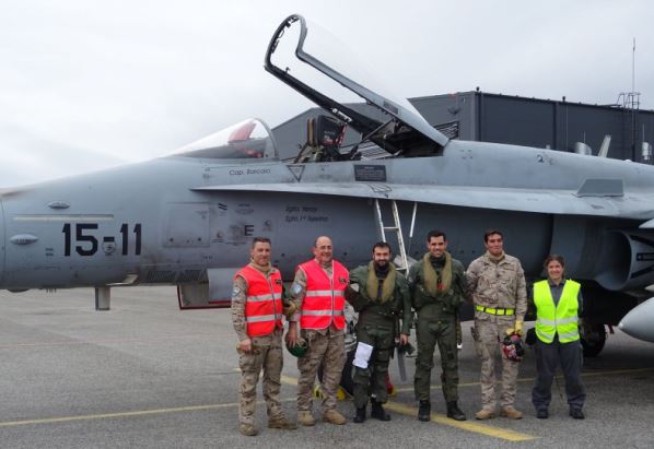 Fotos: Personal del Ejército del Aire en Ämari, junto a uno de los EF-18. Foto: Ejército del Aire.