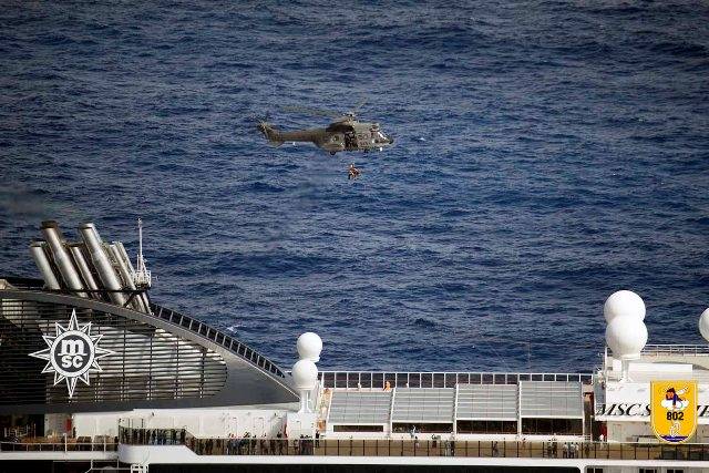 Para realizar la misión despegaron un helicóptero Súper Puma y un avión CN-235 VIGMA (D.4 en la nomenclatura del Ejército del Aire) del 802 Escuadrón (Ala 46). El avión contactó inicialmente con el buque y dirigió al helicóptero hacía su posición. Una vez alcanzado el barco, a las 10:22 horas, el helicóptero realizó la maniobra de rescate mediante izado por grúa. Acompañó a la paciente la médico del crucero, que la atendió en todo momento, ya que el parto de alto riesgo, ponía en peligro, tanto la vida de la mujer como la del feto.