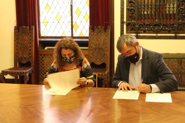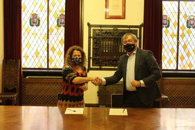 Fotografías: La concejala de Participación Patricia Sánchez y el vicepresidente de EINSA, Carlos Rodríguez Navío firman el acuerdo (Ayuntamiento de Alcalá de Henares)