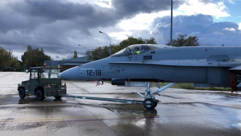 Fotografía: Un TA5 remolcando un F-18 del Ejército del Aire (EINSA)