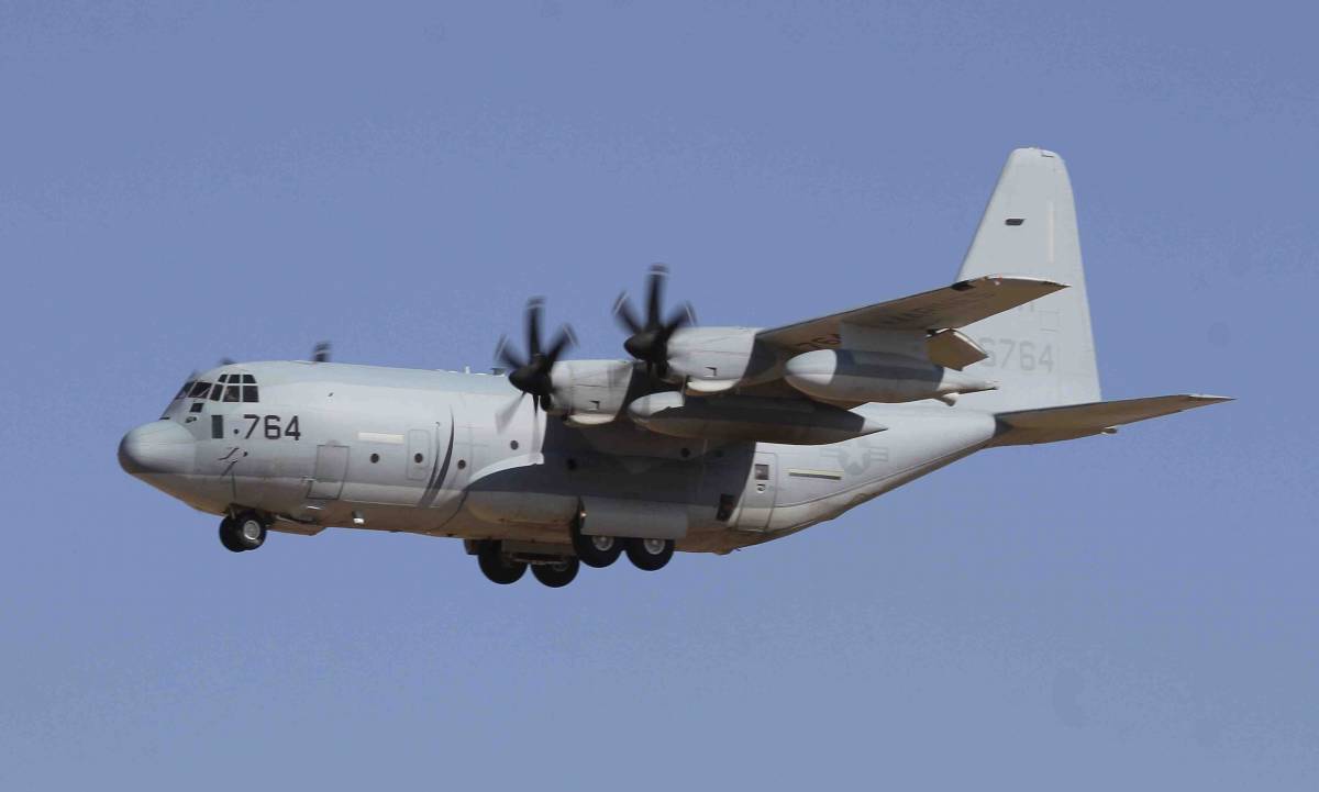 El KC-130J de los Marines aterrizando en Torrejón. Foto: Julio Maíz/defensa.com.