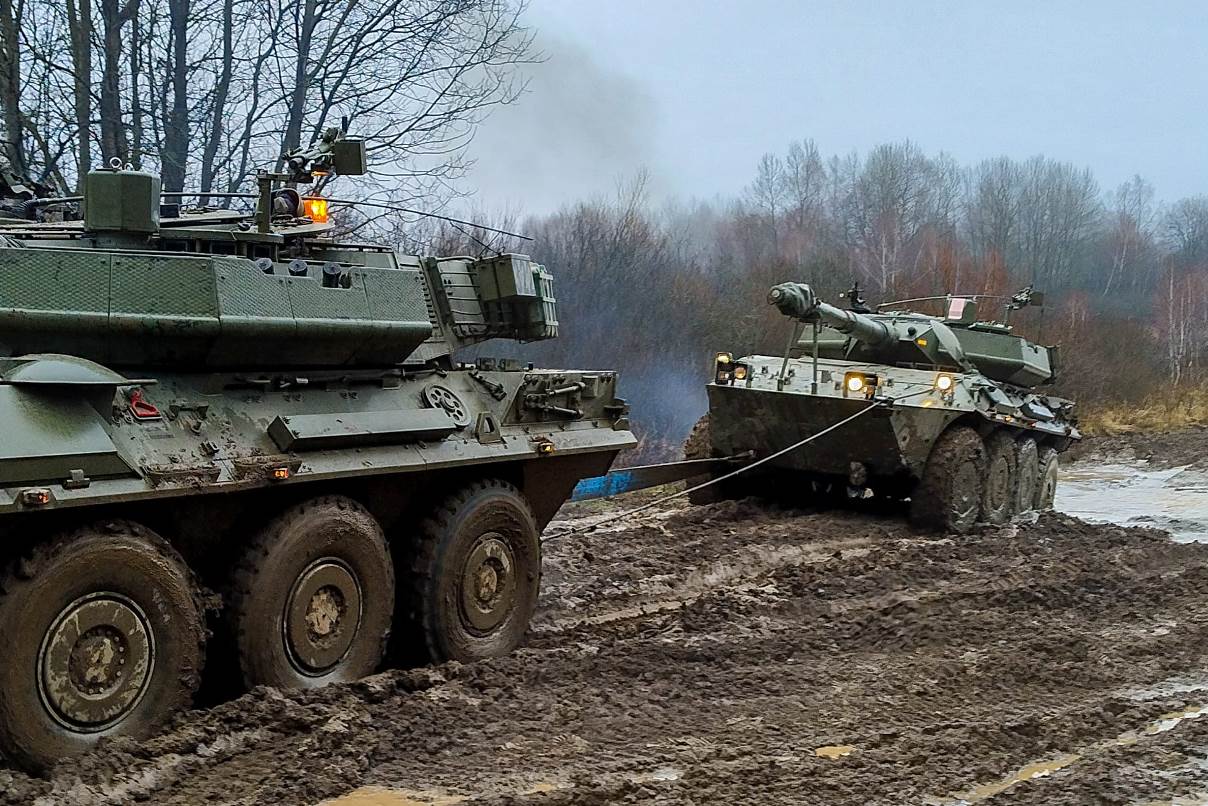 Otra imagen, del ejercicio de remolcaje de los blindados 8x8 VCR “Centauro” desplegados en Eslovaquia. (foto: EMAD)