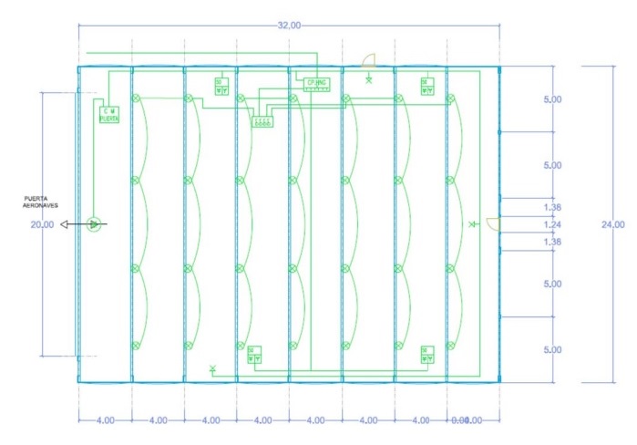 Tendrán un espacio útil en el interior de 32 metros de largo por 24 de ancho, con una altura central libre de 7 metros y lateral de 6,50. Los costados estarán formados por material textil flexible, contará con una puerta frontal de 7 metros de alto para el paso de los helicópteros y dos laterales para el personal. El contratista además proporcionará los contenedores nuevos de 20 pies para el traslado de los hangares y la formación al personal para su instalación y despliegue.