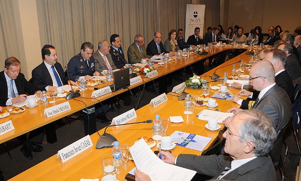 En el acto, celebrado en el Instituto de Cuestiones Internacionales y Política Exterior (INCIPE), intervino como ponente el Jefe de Estado Mayor del Ejército del Aire, general del aire F. Javier García Arnaiz, y que contó con la presencia, entre otras autoridades, del director general de Política de Defensa, almirante Juan F Martínez Núñez. Sobre el presupuesto se destacó la necesidad de adaptar las actividades a la contención que ha sufrido el gasto en Defensa en España. Por ello, se ha decidido no rebajar el nivel operativo y de seguridad, sino limitar el número de militares que vuelan a través de planes cíclicos anuales para que, aunque se recorte el personal que hace salidas, se encuentren en plenas capacidades. Esto ha hecho que puedan sortear la deficiencia en el presupuesto y hayan conseguido que las horas de vuelo se incrementen cada año. También se ha aumentado el número de ejercicios que realiza el Ejército del Aire, manteniendo al mismo tiempo su presencia internacional en los seis destacamentos aéreos en Afganistán, Irak, Yibuti, Dakar, Libreville y Estonia. Todo ello para asegurar que el Ejército del Aire siga siendo la principal opción de respuesta militar cuando se requiera acción en o desde el espacio aéreo.