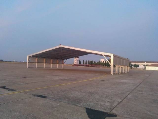 Las españolas están compuestas por largueros metálicos que sujetan la cubierta, siendo las primeras las instaladas en la Base Aérea de Morón (Sevilla) para proteger a los Eurofighter del Ala 11. La decisión se tomó durante la primera década de este siglo, como una manera barata y eficaz de resguardarlos del sol y las altas temperaturas de esta calurosa zona de España.